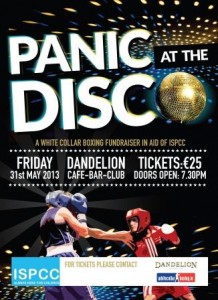 'Panic at the Disco' is a six week training programme of white collar boxing which will culminate in two main events in Dublin and Cork - Final event to take place in Dandelion Nightclub, St Stephen's Green in Dublin and the Savoy Nightclub in Cork - hence the 'Panic at the Disco'!